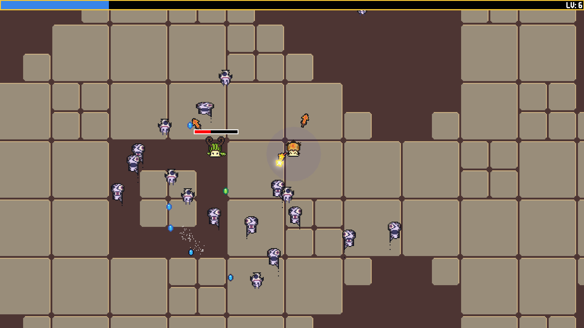 Um vampire survivors com cogumelos e mecânica de possessão. Chegue perto de um inimigo para tentar convertê-lo em um aliado temporário!